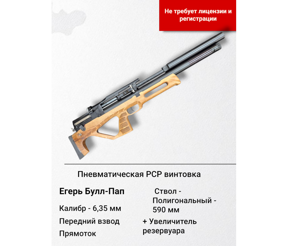 Пневматическая винтовка Егерь (Jæger), булл-пап, SP (прямоток), полигональный Alfa Precision ствол 590, кал. 6.35 мм. передний взвод, с увеличителем резервуара